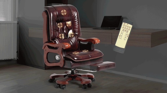 Le fauteuil de massage Evan est 25 % plus grand qu'un fauteuil de direction ordinaire. Il peut être incliné jusqu'à 155°, possède une élasticité de balancement réglable et des repose-pieds rétractables. De plus, cette chaise de bureau à dossier haut utilise des plaques, des roues et des roulettes lisses en PU, avec une capacité de charge de 550 livres.