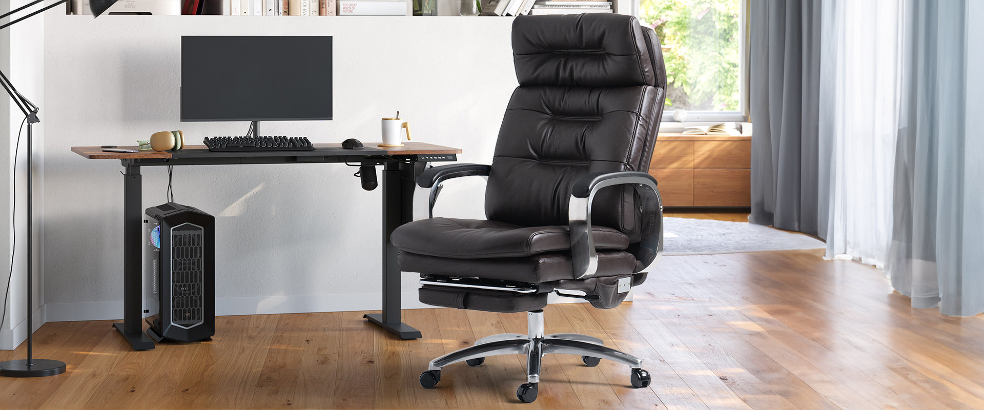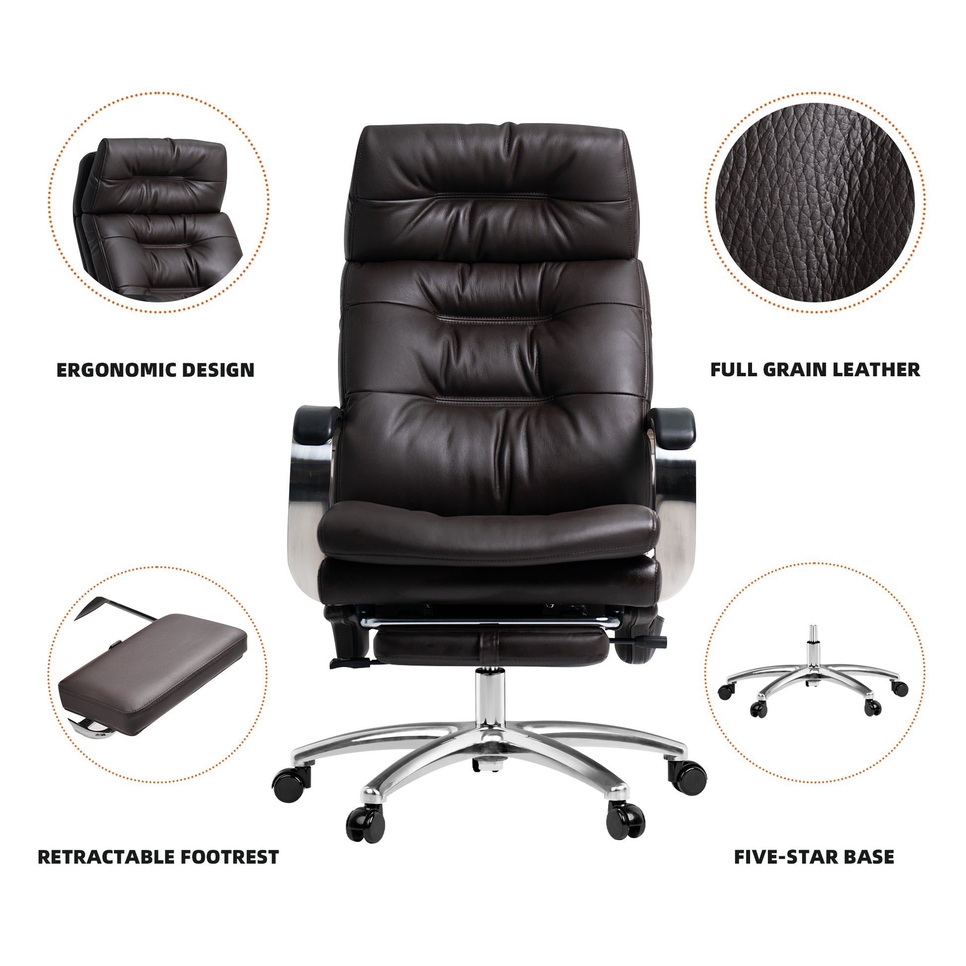 Le support lombaire double couche et le repose-pieds rétractable prennent bien soin de votre dos, de vos lombaires et de vos épaules. Le dossier de conception ergonomique s'adapte parfaitement au bas de votre dos, vous offrant un maximum de confort et de soutien. La base robuste 5 étoiles offre une stabilité et une résistance exceptionnelles.